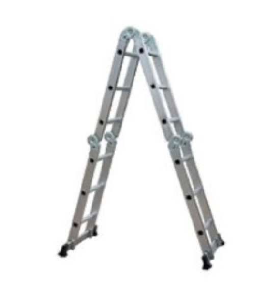 Escalera articulada de aluminio con múltiples posiciones de uso, ideal para trabajos domésticos y profesionales.